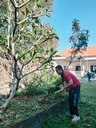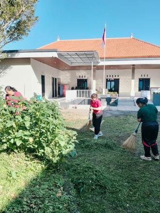 Kegiatan yang seharusnya dilaksanakan dikawasan Pantai atau Sungai bagi Desa yang tidak memiliki pantai hanya dapat dilaksanakan di area kantor Perbekel dikarenakan letak sungai yang jauh dari Kantor. Selain membersihkan area kantor, seluruh staf yang hadir juga membersihkan, menyapu, menata taman, memotong rumput, dan memungut sampah plastik di area gedung serba guna setelah malam sebelumnya digunakan sebagai tempat reses Senator DPD RI.