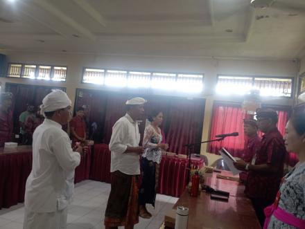 Upacara pelantikan yang disaksikan oleh Perbekel Galungan, Ketua dan anggota BPD, Sekretaris Desa melaksanakan persembahyangan secara agama Hindu, kemudian dilanjutkan dengan pembacaan Surat Keputusan Bupati tentang Pengangkatan anggota BPD Pengganti Antar Waktu, pengambilan sumpah dan janji sebagai anggota BPD dan di akhiri dengan penandatangan Berita Acara.