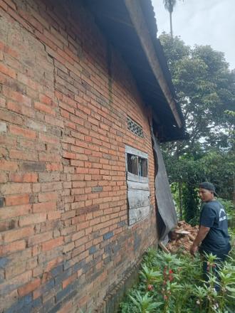 Setelah adanya kejadian tempat usaha warga yang terkena lonsoran tanah dan jalan yang menuju rumah salah seorang warga ambles karena hujan, hari ini kembali bencana menimpa salah seorang warga yang berada di daerah pondok banjar dinas Desa.