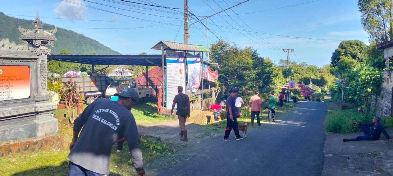 Dipimpin langsung oleh Bapak Perbekel Galungan I Nyoman Suksema kegiatan hari ini difokuskan di sebadan jalan utama desa mengingat sebentar lagi akan menyambut hari raya nyepi dan kegiatan akan banyak dilaksanakan di area kantor desa yang menjadi pusat kegiatan kemasyarakatan.